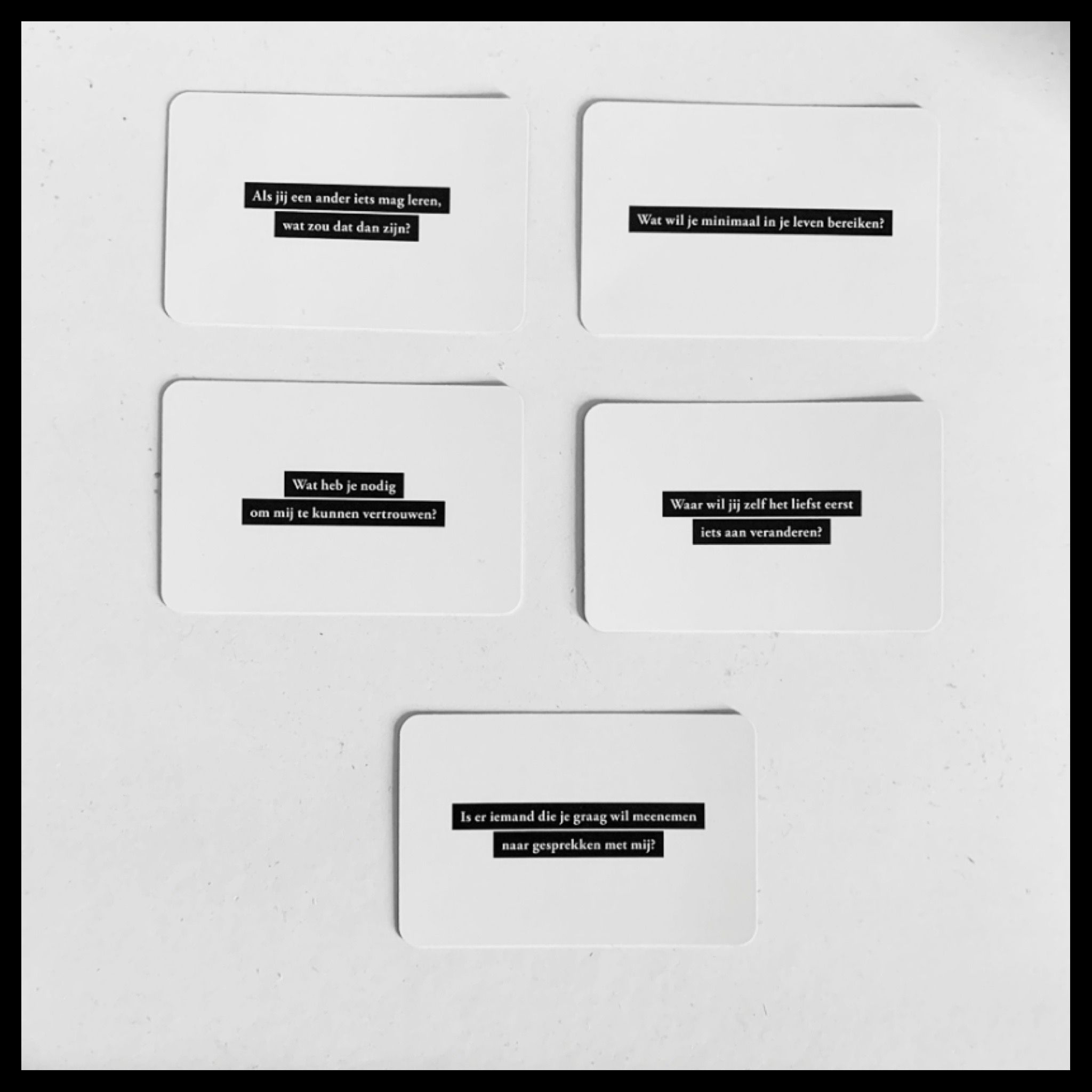 Alle vragen die je leest op de kaarten zijn aangedragen door jongeren die ervaring hebben met jeugdhulpverleners en die antwoord hebben gegeven op de vraag: Wat waren de beste vragen die een hulpverlener je ooit heeft gesteld en zou elke hulpverlener moeten gebruiken in gesprekken met jongeren?’